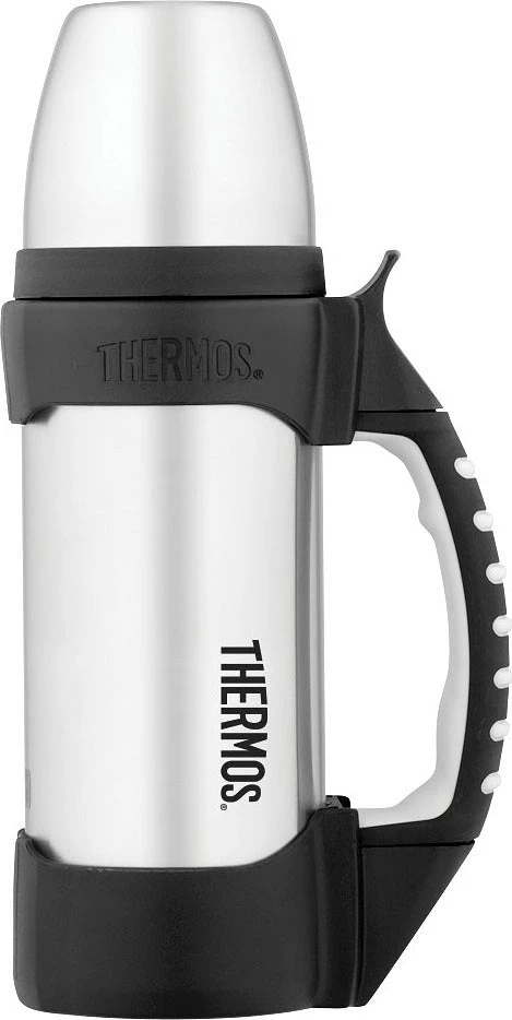 Built to be a reliable companion for the hardest working people on the job site, the Work Series™ Beverage Bottle from Thermos® brand is rugged and ready to meet the demands of daily use. This bottle has a large, 1.2 L capacity and will keep drinks hot or cold for 24 hours. A comfortable, rubberized handle is easy to grip and a rubber base helps keep the bottle from sliding around.